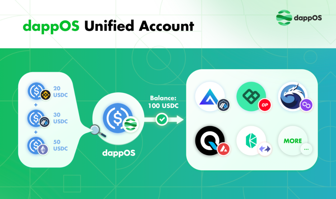 • dappOS Account:让用户使用基于账户抽象的“统一账户”,而不是普通的外部拥有账户(EOA),这种方式使得用户恢复账户、预批次处理交易、自动化执行等功能的实现成为可能,同时多链钱包聚合的方式也能方便用户对不同链上的资产进行统一管理。