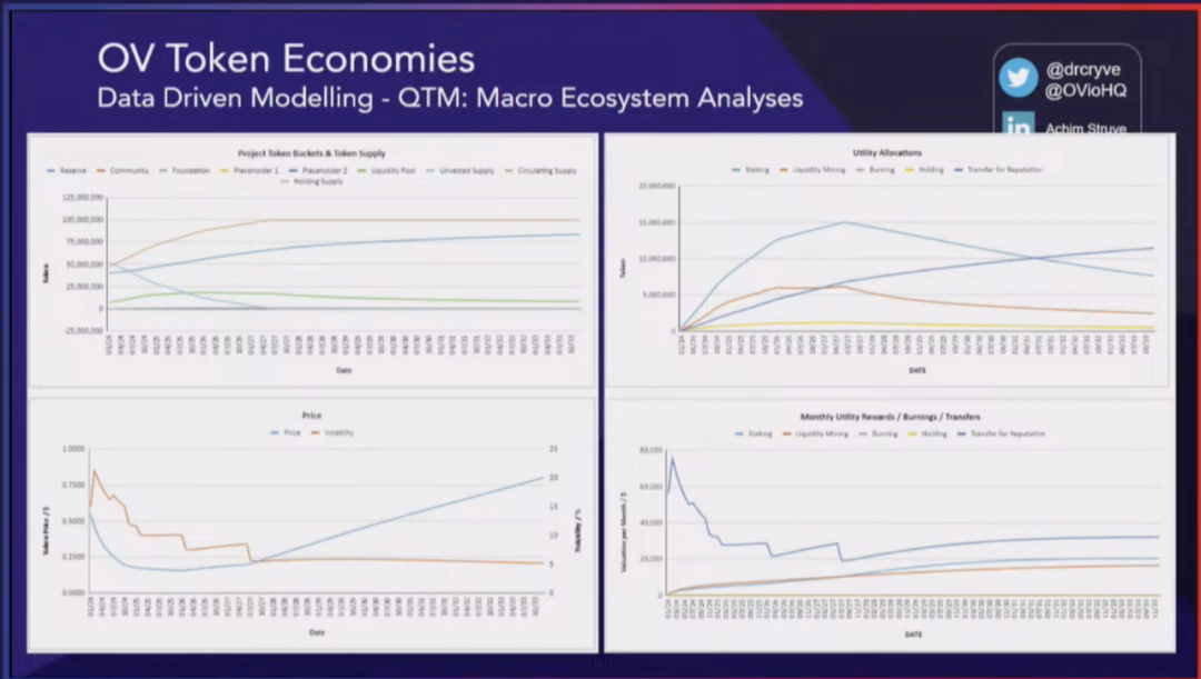 价格在生态系统中是一个非常重要的指标。如果代币价格在一年中暴跌了 90%,这对生态系统来说将是非常不利的。虽然我们知道我们无法准确预测未来,但至少我们应该考虑需求方面并尝试对其进行建模和预测。这并不意味着追求某个确定的结果或特定数值,而是通过蒙特卡罗模拟和参数扫描来探索整个可用的解决方案空间。这样做可以帮助我们了解不同情况下的可能性,并制定更加全面和灵活的策略。