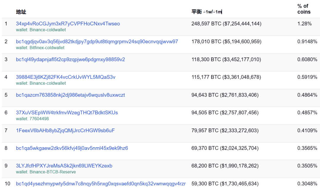 bitinfocharts BTC地址富豪榜 TOP10