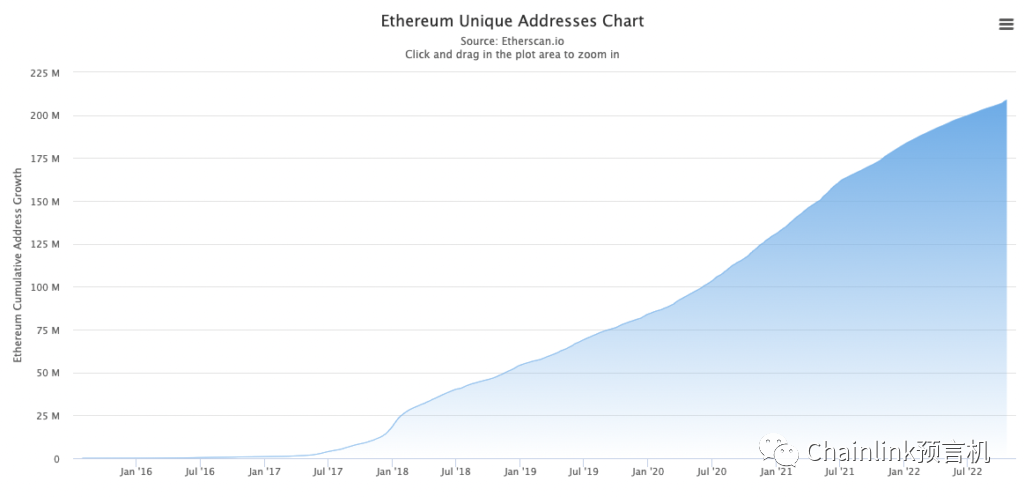 以太坊上独特地址的增长情况