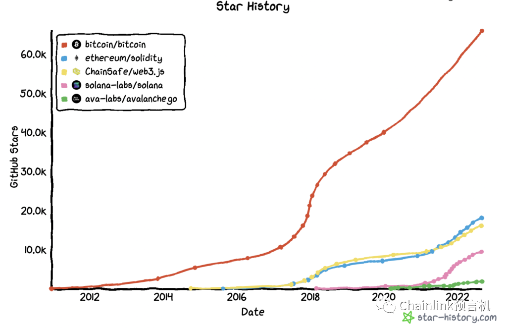 比特币、Solidity、Web3.js、Solana和AvalancheGo的GitHub代码库星标数