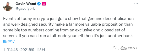 (gavin wood在solana首次宕机后发表的评论,指出用户能低门槛运行全节点才是区块链的真谛)