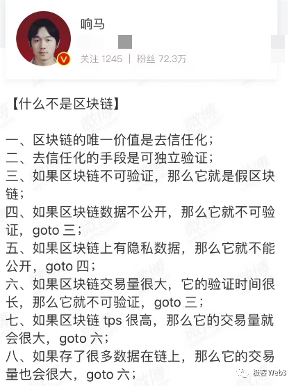 响马:我一直说web3.0和web3不是一个东西,web3.0是下一代互联网想要解决的一些问题的总和,web3是一群人希望能够用区块链解决所有互联网出现问题的一种尝试。