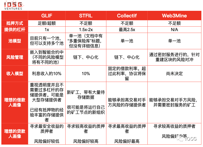 从借款人(矿工)的角度来看,矿工可以从不同的协议中借款以满足不同的目的。如果矿工已经有了很多抵押品,并且不需要通过杠杆支付运营费用,那么更安全的超额抵押模型将效果更好,因为它更安全。然而,如果我是一个新的矿工,需要质押大量存储区块,我可能会从不充分抵押的池中借款。