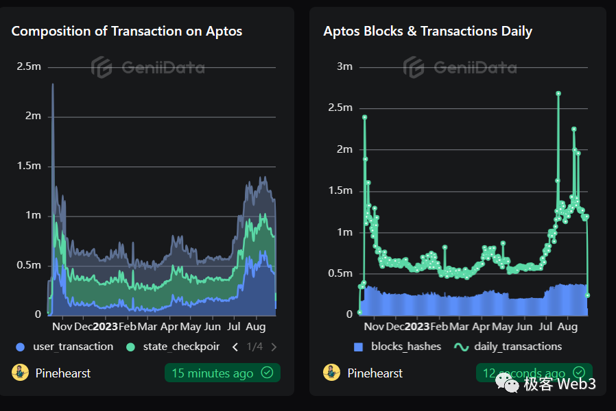 (没有做反女巫审查的Aptos,链上交易数量在发放空投时短暂触及顶点,随后很长时间都很低迷)