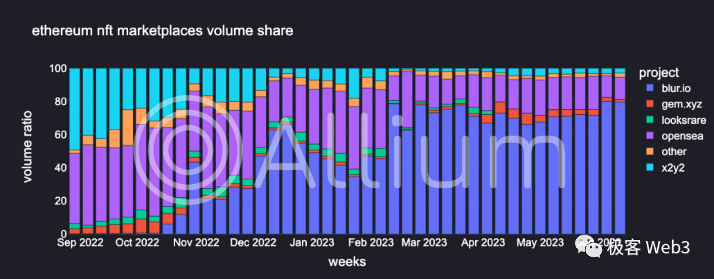 (Blur一步步蚕食着OpenSea建立的市场份额优势)