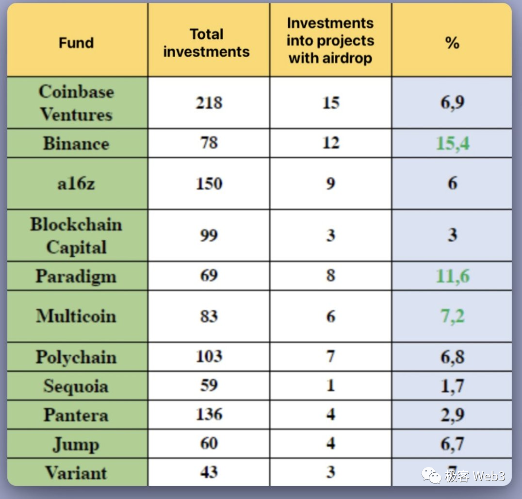 (部分著名VC的投资项目空投率 图源:@ardizor)