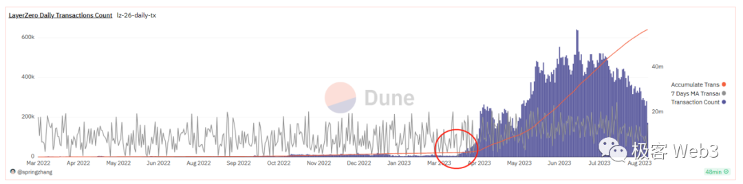 (Arbitrum空投发放后,三个融资超一亿美元的项目Layerzero和Starknet的地址数、日活都大幅增加,ZkSyncEra在3月份主网上线后以每日至少5000个新活跃地址的速度在增长)