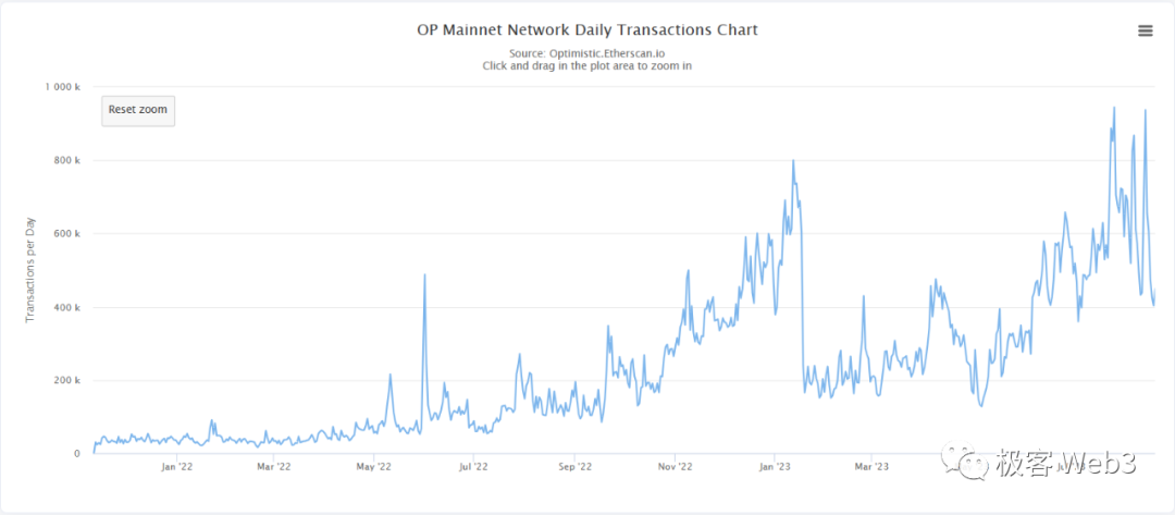 (OP链上每日交易笔数,在空投之后长期保持高位)