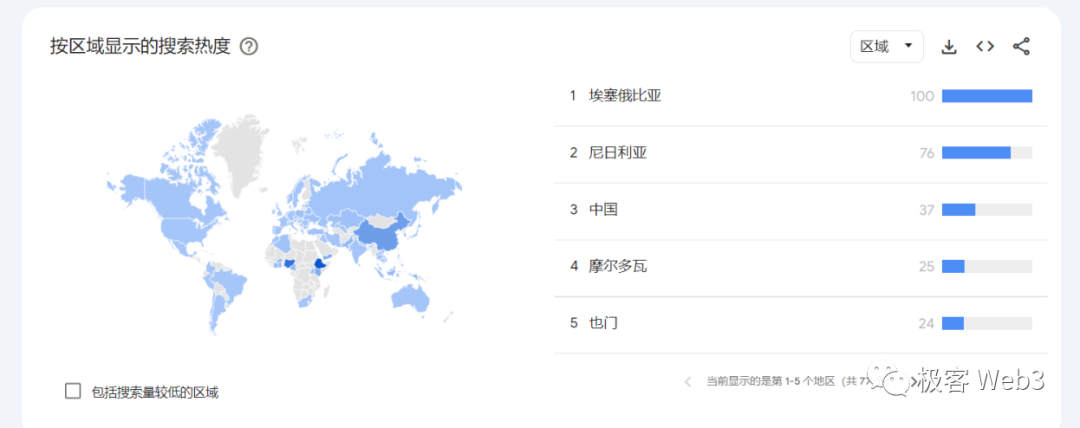(根据Googletrends,空投关键词搜索集中于中低收入的发展中国家)