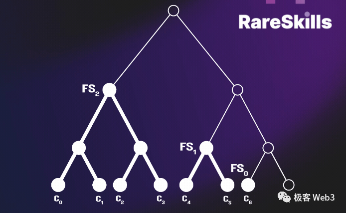 比如,Bob的存款操作是Tornado有史以来第1万笔,那么与这笔存款有关联的一个特征值Cn会写入Merkle Tree的第1万个叶子结点,也即C10000 = Cn。然后合约会自动算出新的Root,update一下。(ps:为了节约计算量,Tornado合约会缓存之前一批有变化的节点的数据,比如下图中的Fs1和Fs2、Fs0)