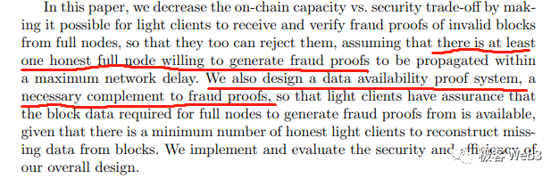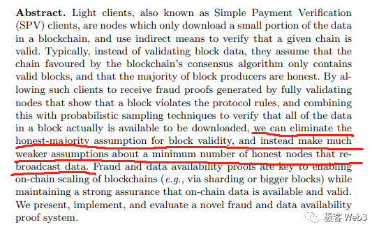 有趣的是,这篇论文第一作者是Mustafa而不是Vitalik(另一名作者现在是Sui公链的研究员)。文中提到了欺诈证明Fraud Proof的概念,并解释了数据可用性采样DAS的原理,粗略设计了一套DAS +二维纠删码+欺诈证明的混搭协议。论文中则明确提到,DA证明系统实质是欺诈证明之上的必要补充。