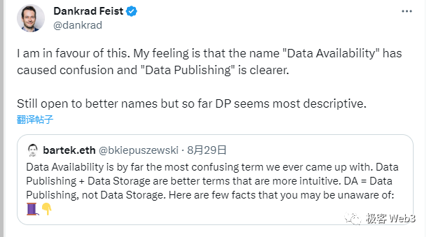 导语:到底什么是数据可用性?可能绝大多数人第一印象是“可以获取某个时刻的历史数据”,但这其实是对DA概念最大的误解。近期L2BEAT联创与Danksharding提出者、Celestia创始人都对这一误区做出了澄清,他们指出,Data Avalibity实际上应该指“数据发布”,但大多数人把DA理解成了“历史数据可检索”,而后者实际上涉及到数据存储问题。