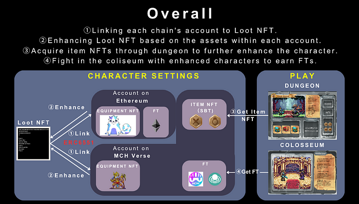 ③ 使用强化后的角色探索地下城,赚取 NFT 作为“经验值”,这将以 SBT 的形式累积在 TBA 中。