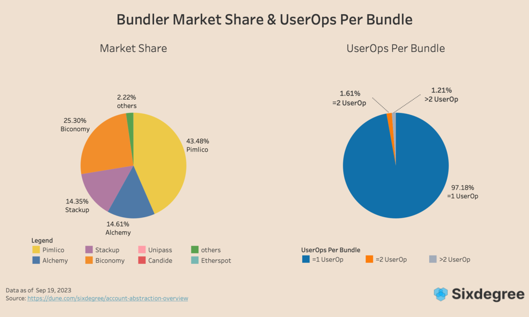 其次 Stackup 占了 14.5%,Alchemy 和 Biconomy 分别占约 16.43% 和 23.29%。
