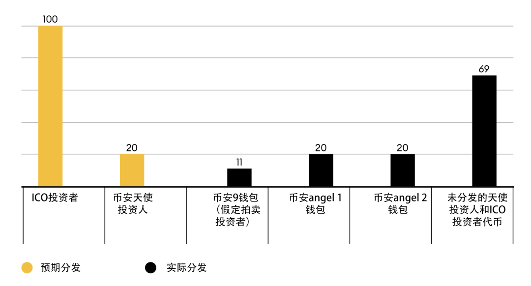 在ICO结束后的第一个月内,我们对其天使投资人和散户投资者的综合考察只统计到了不到2000个地址,约占赵长鹏声称在交易所注册的20,000名用户的10%。