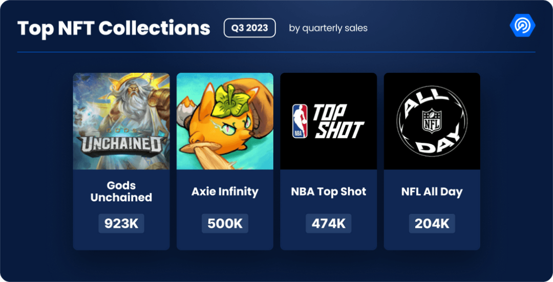 排名前 5 的 NFT 系列都属于游戏领域。这足以证明 NFT 游戏仍然是 2023 年第三季度 NFT 领域的主战场。显然,游戏和 NFT 之间的协同作用继续吸引着用户,凸显了数字领域这种独特交叉的持续动力和潜力。