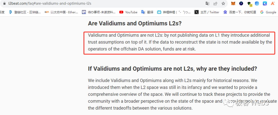 换言之,除了真正的Rollup之外,其他的扩容项目都不是以太坊Layer2(我们可以把Plasma和状态通道忽略掉,因为这两种技术方案几乎在以太坊生态消失了)。
