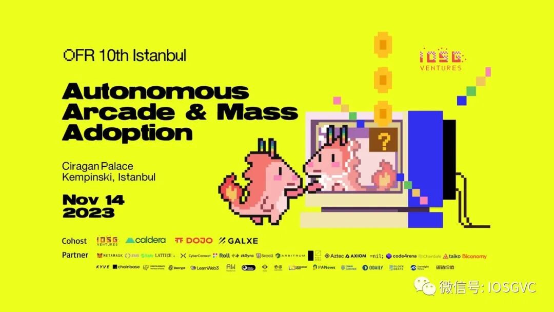 IOSG Ventures 老友记土耳其站 -- Autonomous Arcade & Mass Adoption 将于11月14日举行!本次活动由IOSG Ventures,主办,Caldera,Dojo,Galxe参与作为联合主办方,合作伙伴包括行业龙头如Metamask, ENS, Safe, Lattice, CyberConnect, Roll, zkSync, Scroll, Arbitrum, RISC Zero,Nil Foundation, Taiko等项目。本次活动主题将聚焦游戏、应用、基础设施、账户抽象, RaaS, Layer 2应用等,力争为参会者提供一场场行业顶级的视听盛宴!