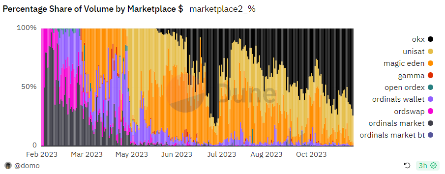 数据来源:https://dune.com/domo/ordinals-marketplaces