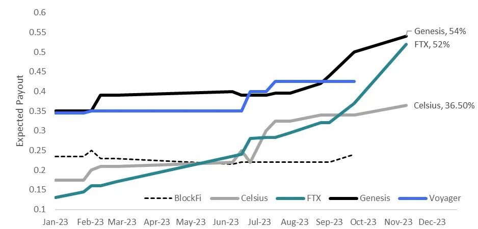 图表 4: 以债权人价值百分比计价的债权- FTX 债权今年增加了两倍
