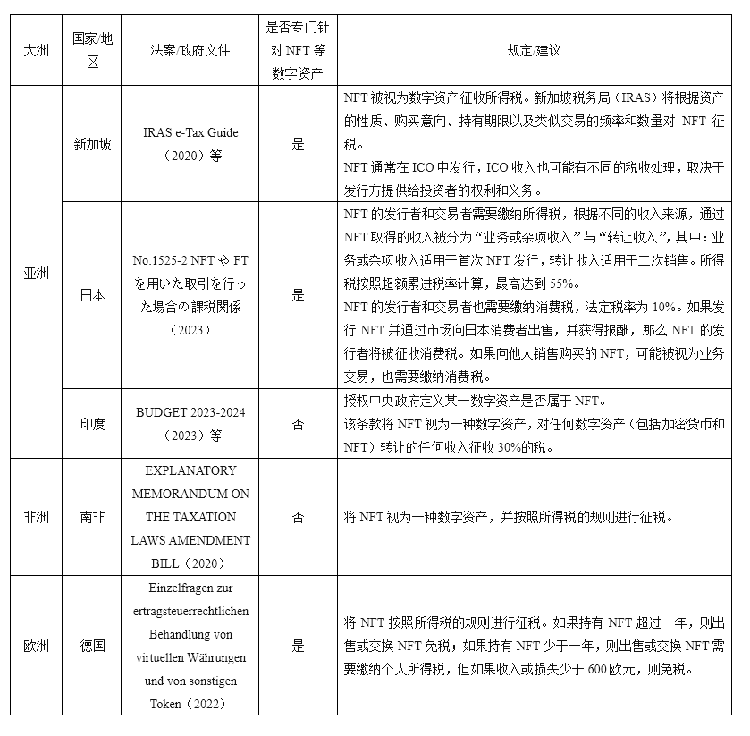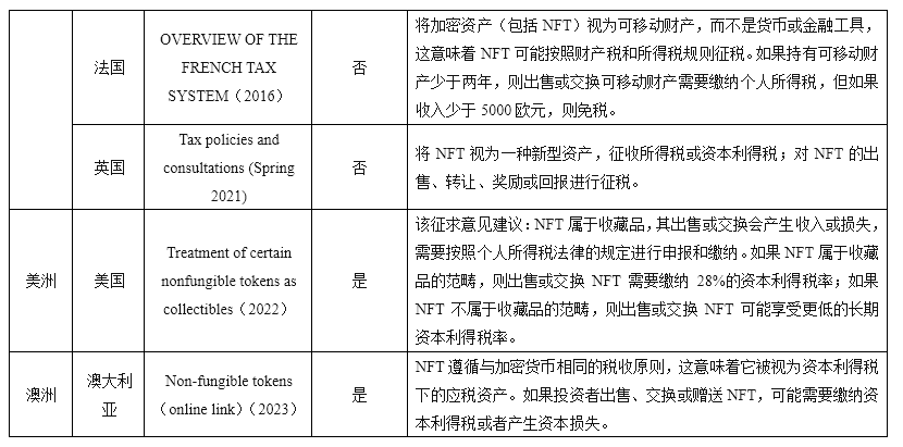3 比较视角下的全球 NFT 税收政策