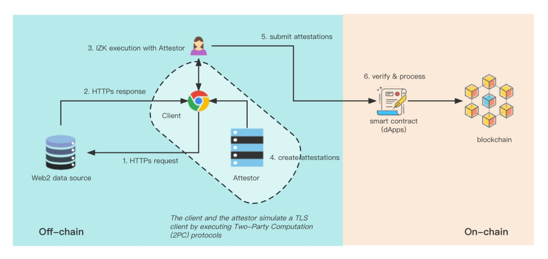需要注意的是,这些与TLS相关的操作都是在客户端和验证者之间通过双方计算(2PC)协议执行的。MPC-TLS的设计依赖于一些加密技术,如混淆电路(GC)、遗忘传输(OT)、IZK等。