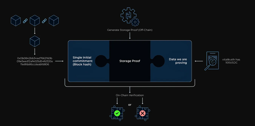 这个赛道里已经有了一些佼佼者,思路其实都差不多,通过storage proof或者共识生成ZK证明然后丢到链上,但技术特点和实现的功能各有所长。