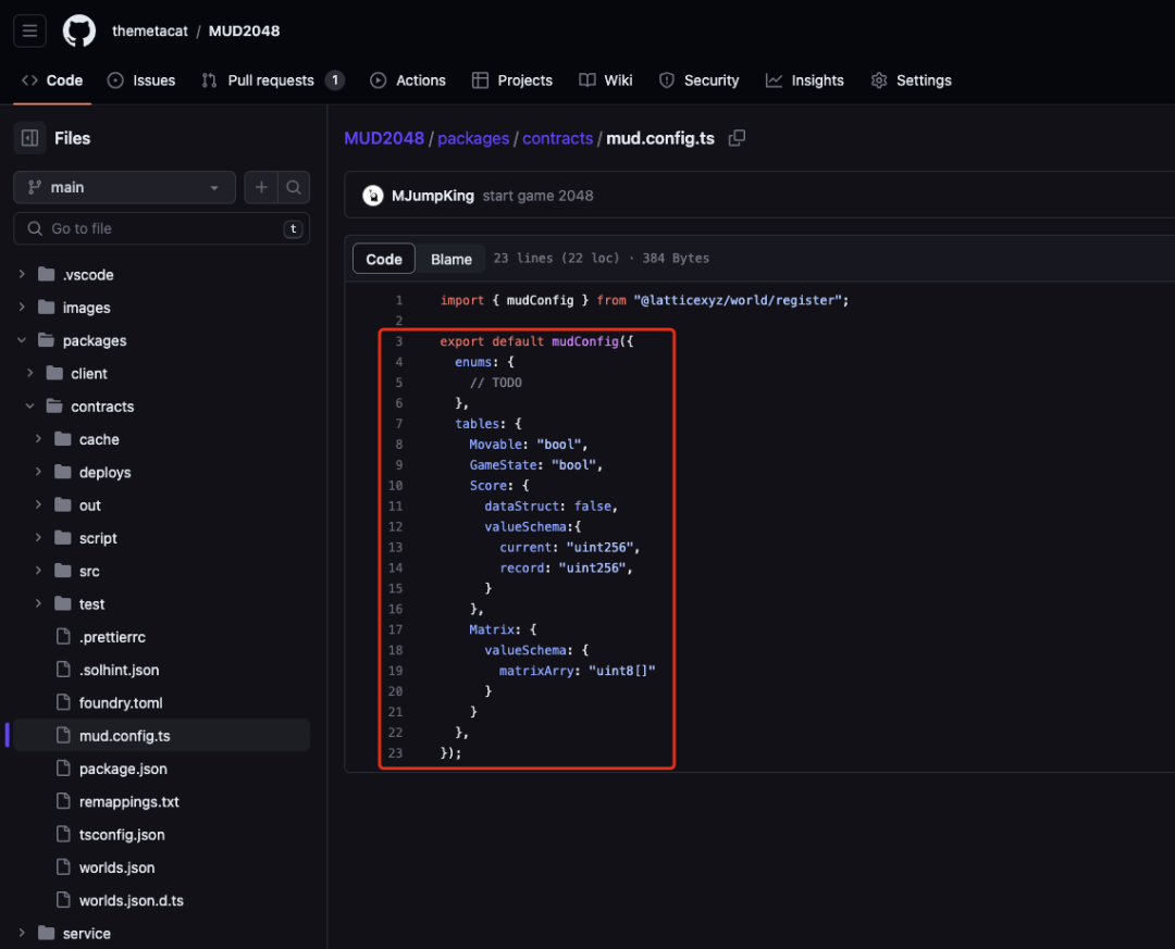 图片来源:https://github.com/themetacat/MUD2048/blob/main/packages/contracts/mud.config.ts