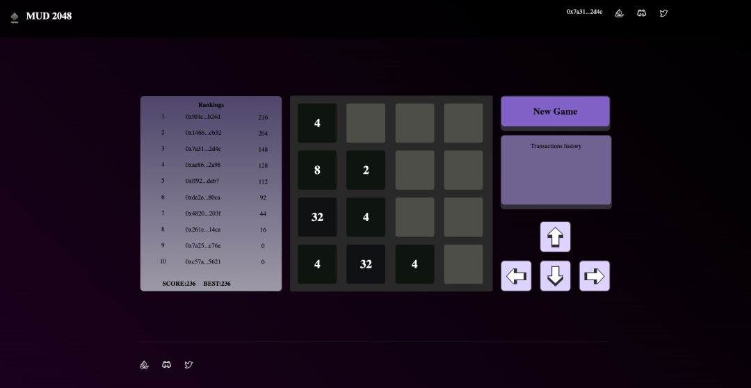 mud2048.fun 是我们为获得对全链游戏开发的微观体感展开的一次探索,旨在通过复刻体验无限接近原始 2048 游戏(play2048.co)的全链上版本,来实地感受全链游戏开发的水温,获得一线的体感。