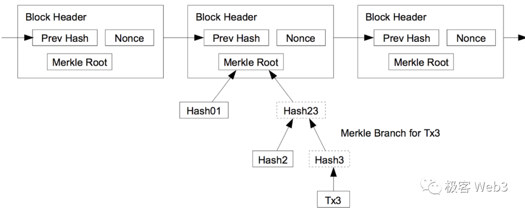 Merkle Tree最底层的叶子节点,由交易或账户状态等原始数据的hash构成,这些hash两两一组求和,反复迭代,最终可以算出一个Merkle Root.