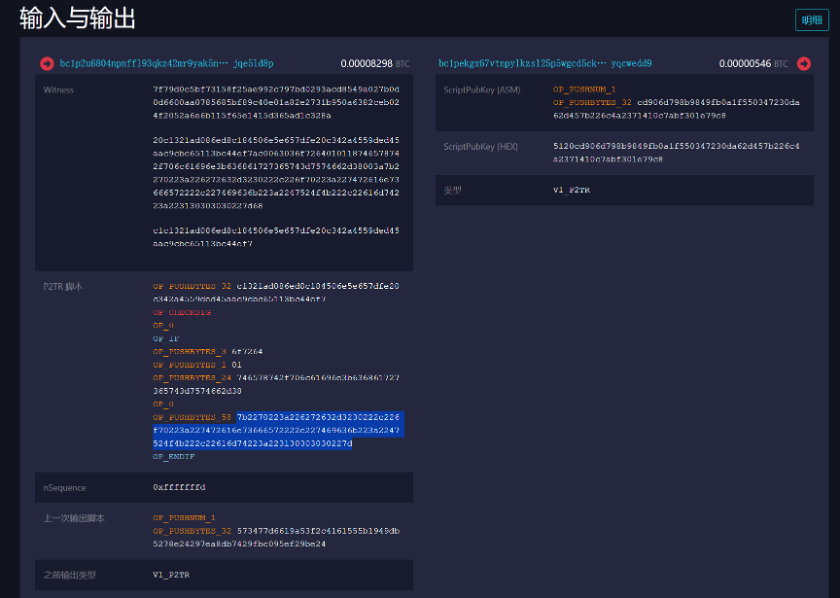 铭文,就是对sats铭刻任意内容,具体方式是将内容放到taproot script-path spend scripts中,完全上链。铭刻内容根据http response格式序列化,被OP_PUSH放进spend scripts的无法执行的脚本中,被称为”envelopes“信封。具体而言,铭刻是在条件语句前添加OP_FALSE,将铭刻内容以json格式放进无法进入的条件语句中。铭刻内容的大小被taproot脚本所限制,总共不能超过520bytes。