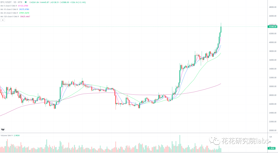 最近的行情可谓是群魔乱舞,什么币都起飞,都是几十个点的拉涨,这样的行情一年也没有几次,真的是逮住强势币追着干就能发财。回到今天的盘面,整体的行情正在加速,现在山寨币一天都拉大几十个点,就是捡钱行情,散户也在疯狂的fomo,越是这个时候,花哥越要去提醒大家,风险和收益成正比,越容易赚钱的收益,风险也在悄悄来临,这个时候一定要稳住,利润和本金该落袋落袋一部分,现在是涨的猛,一旦比特币回调,那回撤是很大的。行情目前虽然没有见顶迹象,但不要过度fomo!