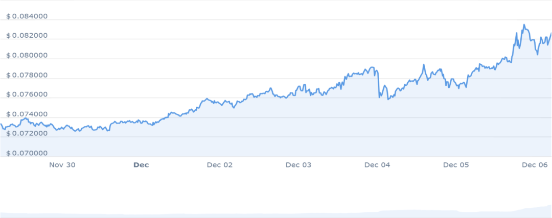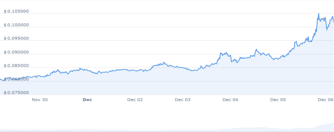 最近几周,狗狗币(DOGE)在广泛的加密市场中表现出明显的增长势头。从11月下旬开始,该币出现了显著的反弹,从0.07美元的支撑位上涨至0.106美元的高位。