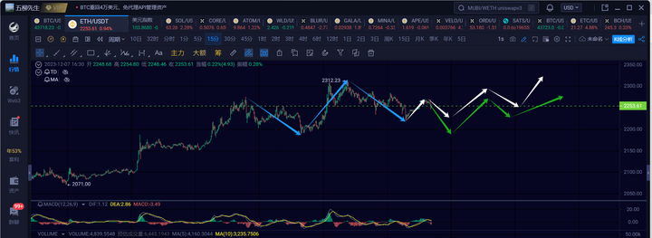 以太当前15分钟级别回调关注2220附近,如果不跌破,那说明1h级别的反弹已经开始了,跌破后能在2185~2200附近稳住,也还是看一笔1h级别的反弹的。届时关注1h反弹的力度。