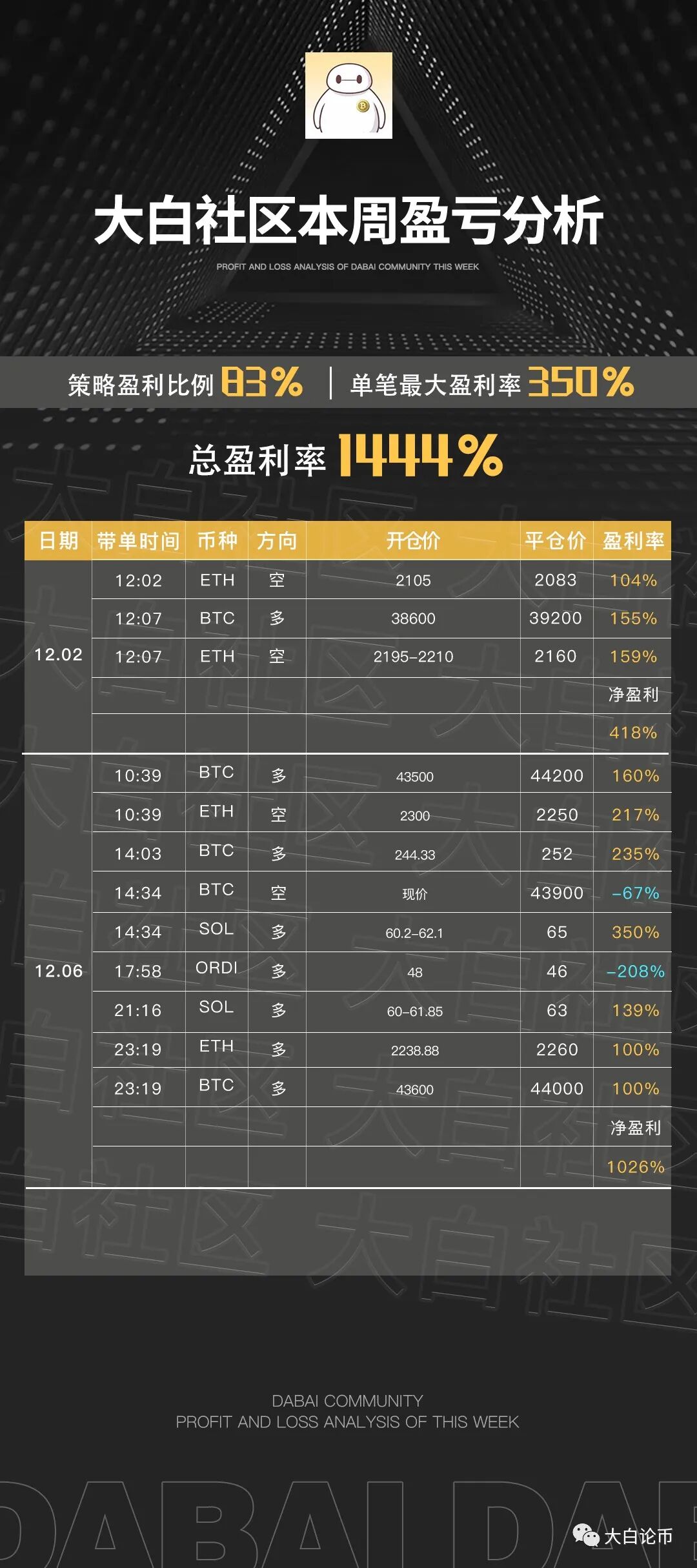 下方是大白社区本周实盘群单子,恭喜跟上的币友,如果你操作不顺,可以来试试水。