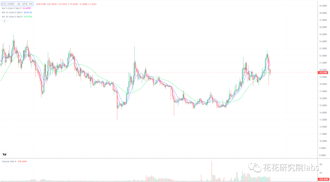 etc短线的走势也不好搞,插针太厉害了,短线只能找支撑去接针做短线,其实我更建议的是观望。