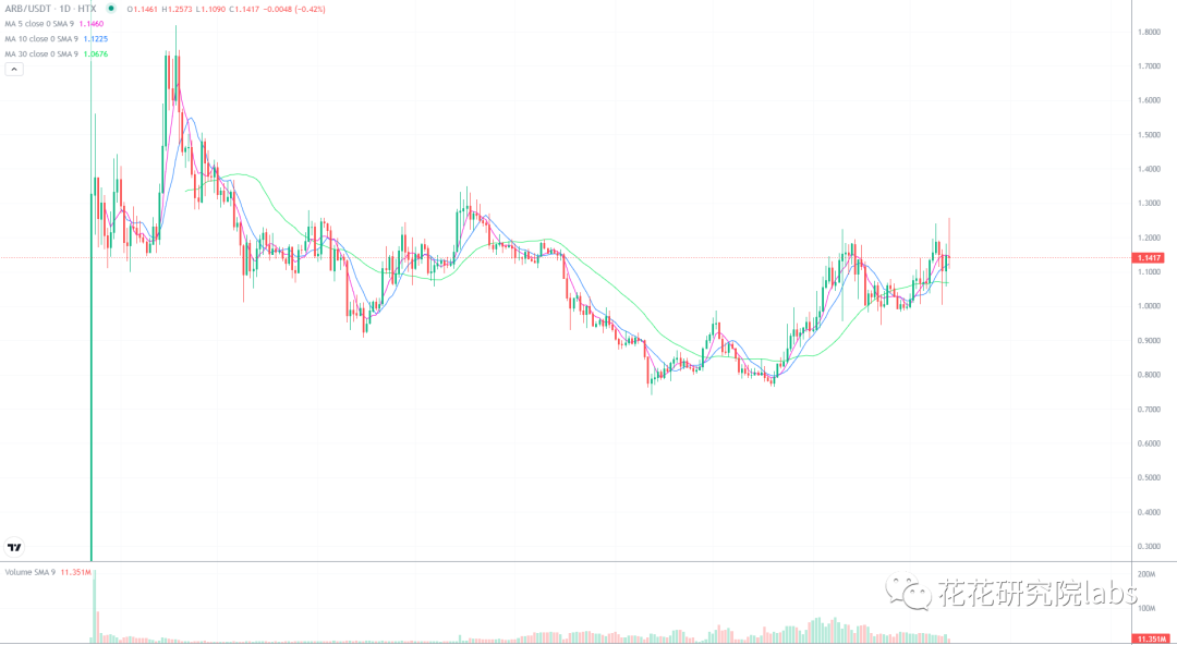 arb向上创出了近期的新高,也说明多头是想拉盘的,奈何大盘不给力,建议短线1美金以上持币,跌破出一半,剩余一半0.94以上持有,跌破全出,如果你arb中长线,建议不要理会短线的波动,后期还会有坎昆升级,会刺激币价更大的上升。