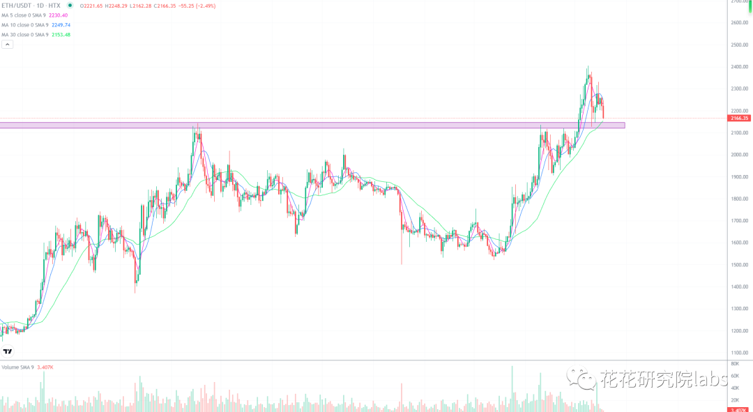 以太坊跟着大盘也开始回调,短线建议关注2125的低点支撑,跌破2125短线适当减仓避险。