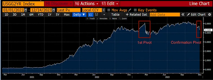 在 2023 年第一季度发生的首次也是最大的转向是,美联储和财政部联手通过使用银行期限融资计划(BTFP),迅速推动了约 4 万亿美元的美国银行系统和国债市场的纾困计划。鲍威尔最近的评论只是对宽松的美国货币政策的确认。