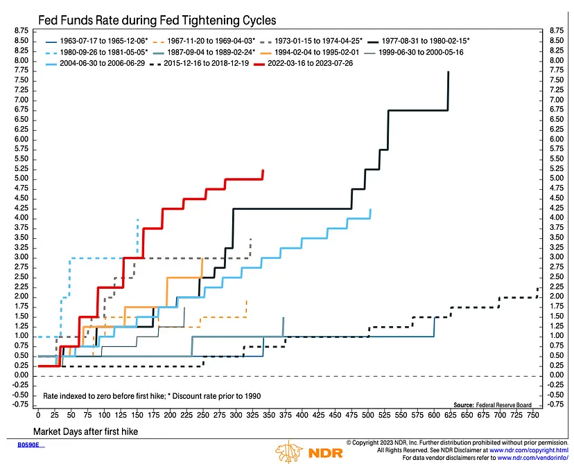 随着疫情后通货膨胀肆虐,拜登让鲍威尔坐下来,并指示他控制通货膨胀。正如你从上面的图表中看到的那样,到 2023 年 3 月,美国国债 2 年期利率从基本上的 0% 飙升到了 5%。这是由自 1980 年代沃尔克(Paul Volker)任期以来最快的美联储加息行动推动的。