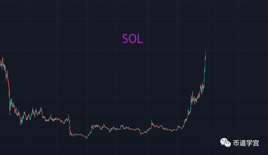 SOL符合升势行情二段波,从动力源上看,整个上升过程中没有见到动力势能枯竭,反而是在提速,这种没有什么可担心的,它不下去,整个市场就还会遍地开花。