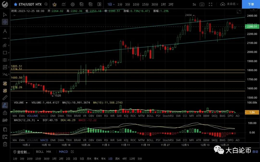 以太坊昨日最高触及2325一线受阻回落,随后行情震荡下行,最低跌至2243一线支撑反弹,恭喜跟上文中思路的朋友,目前币价在2277附近运行,四小时级别行情震荡回落高点降低,空头加速后跌至ma60附近支撑反弹,macd空头运行双线死叉向下,ma7向下指引,有下穿多根均线的可能,短期反弹力度不强,有再次下跌的可能,日线级别k线插针至ma14均线反弹,若能收线在ma7上方预计还有冲高的动能,反之则会试探ma30均线支撑,日内思路建议高空低多对待,上方压制2300-2340,下方支撑2240-2200