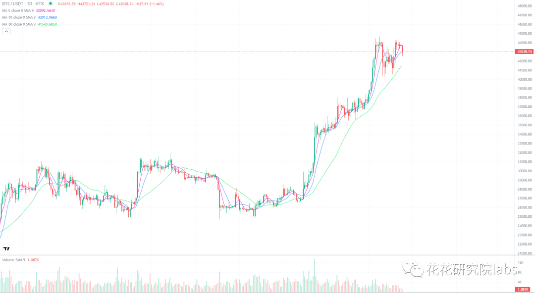 回到今天的盘面,今天是圣诞节,资金可能担心节日下跌,比特币的走势今天小幅下探,花哥认为和什么节没有太大的关系,正常的回调而已,并且回调幅度也不大,如果担心的话,花哥建议休息一两天,等节日过去再去操作。从整体的结构上来看,只要比特币处于40000以上就是安全的,近期重点还是干以太坊二层!