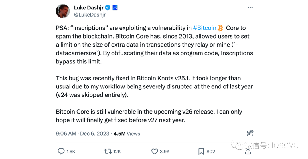 比特币核心开发者Luke Dashjr更直言铭文对比特币是一种攻击,并表示会在其创办的Ocean 矿池中利用 Bitcoin Knots 的「固定」版本来过滤铭文交易。播客 WhatBitcoinDid 的创始人 Peter McCormack也表示,这些在比特币链上发行的“新型资产”推高了交易费用,并未让使用比特币交易的人获益。高费用环境减少了能够负担得起将比特币存储在链上的人数,并使 Lightning 上的渠道开放变得复杂。但Ordinals开发者Casey Rodamour 将比特币铭文资产视为解决比特币安全挑战的解决方案,通过比特币交易手续费的激励,即使在出块奖励不断减少甚至到零的未来,矿工依旧有动力来维持比特币网络的正常运转。