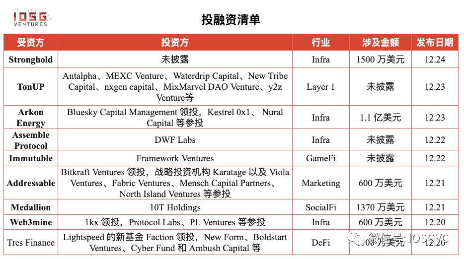 IOSG ventures于2017年开始在加密行业投资布局,是Web 3.0主要垂直领域的早期投资者。作为行业研究和社区驱动的原生加密基金,我们长期与优秀的早期项目和协议一道,致力于行业的发展和创新。我们的投资组合包括一系列创造性和高潜力的项目,如 ZKRU (Scroll、StarkWare、Arbitrum、zkSync、Taiko)、Security Auditing (Runtime Verification、Hexens)、MEV (Flashbots、 Blocknative)、DeFi/NFT-Fi (1inch、MetaMask)、FOG (Big Time、Illuvium),以及 Arweave、Cosmos、Celestia、EigenLayer、Scroll、zkSync、Nil Foundation 和 Mina 等行业领先项目。