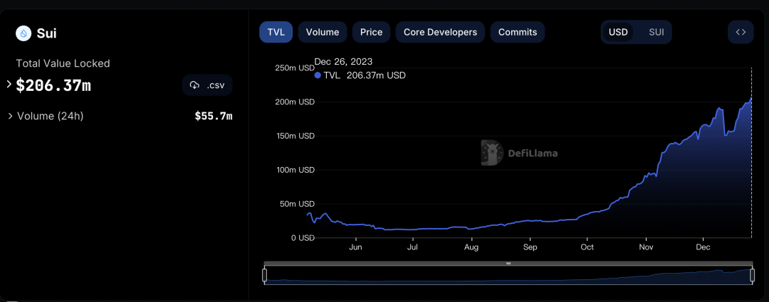 而Sui的TVL是206m,其流通市值是9亿美金,总市值是85亿美金。