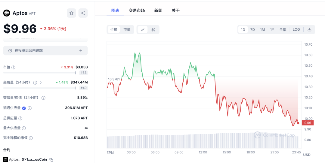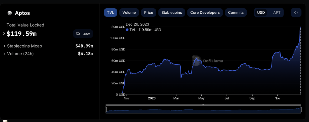 Aptos的TVL是120m,其流通市值是30亿美金,总市值是106亿美金;
