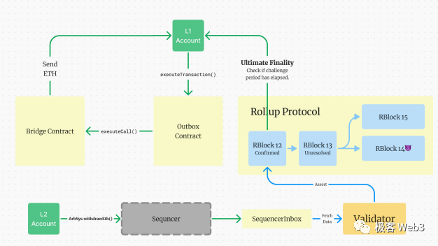 3. Validator节点根据快箱中的交易序列,创建新的Rollup Block,其中会包含上述提款交易。