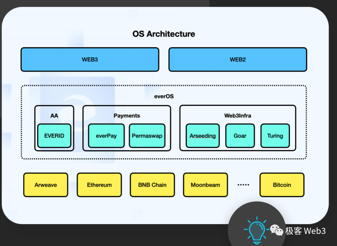 该项目的DA层使用了永久存储设施Arweave,即图中的大圆圈。